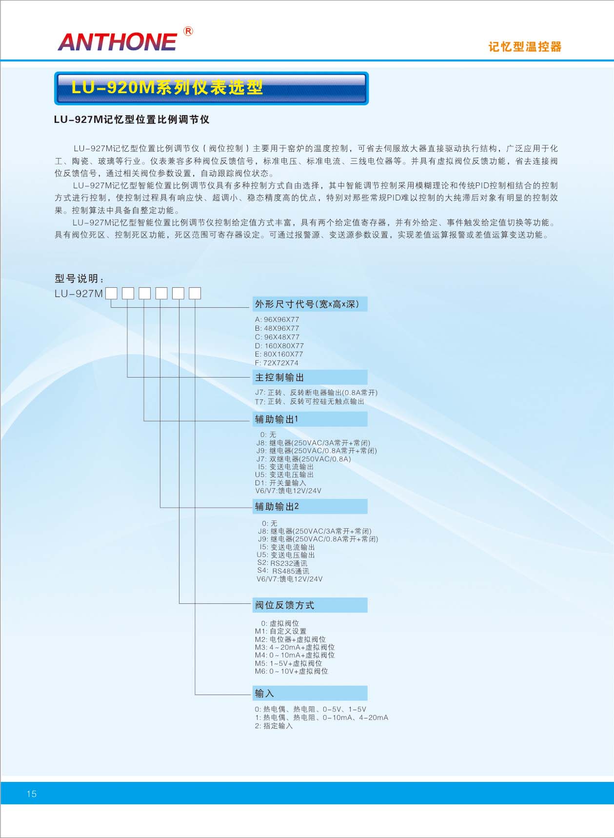 LU-927M智能位置比例調(diào)節(jié)儀(閥位控制)是一種采用全新設(shè)計(jì)理念的高性能、高可靠性智能型工業(yè)調(diào)節(jié)儀