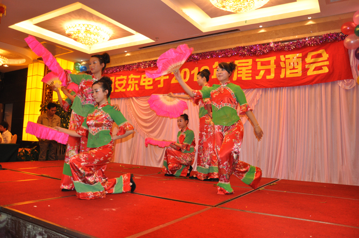 晚宴中,大家一邊欣賞著連臺的好戲,一邊互相敬酒,互道祝福,合影留念。每一個人都想把今夜的美好,深深地留在記憶中。晚會在一片歡聲笑語中,走到了尾聲,大家都覺得意猶未盡,于是,大家都相互約定,明年此時,還要再一起把酒言歡,高歌暢飲。2010年安東電子有限公司尾牙晚宴,在此圓滿落幕。