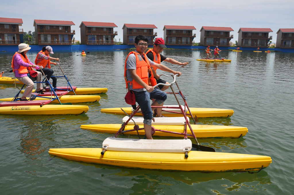 時(shí)間很快到了中午,午餐安排在了休閑漁村,導(dǎo)游介紹了下午的旅游行程和注意事項(xiàng)后,大家就開始品嘗著當(dāng)?shù)靥厣暮ur美食。一餐美食之后,大家就又開始了新一輪的游玩,大家各自選擇漁村配套的娛樂設(shè)施(包括水上自行車、鹽浴、皮劃艇等),通過這些項(xiàng)目,我們大家不僅更好的增加了彼此之間的感情,也更能的體會(huì)到了團(tuán)隊(duì)合作的重要性。